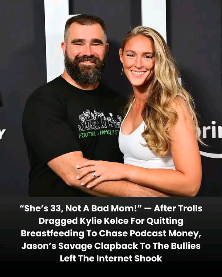 Jason Kelce isn’t holding back — and he made it crystal clear when fans began attacking his wife, Kylie Kelce, over her parenting choices. In a wave of social media criticism, some commentators suggested that Kylie was prioritizing work and public appearances over her children. But Jason stepped in with an emotional defense that revealed a side of the Kelce family the public rarely sees.