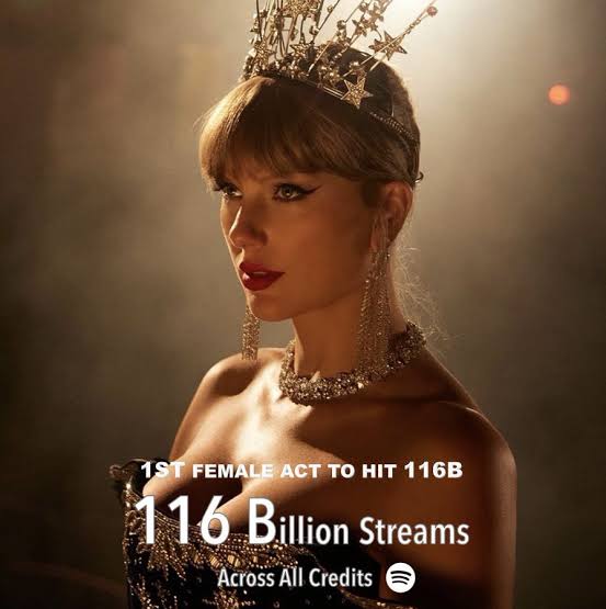 In a milestone that once felt unimaginable, Swift has officially become Spotify’s first female artist to surpass 116 billion streams, cementing her status not just as a pop star, but as a once-in-a-generation force shaping the sound and scale of modern music. Alongside the streaming triumph, multiple sales records continue to fall in her wake, proving that her dominance isn’t confined to one platform — it’s everywhere.